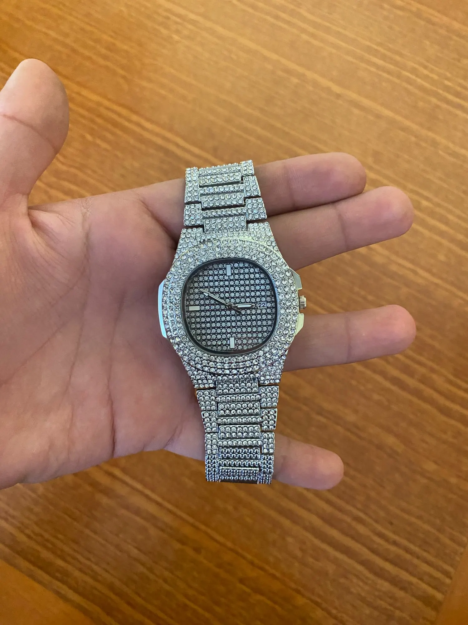 Upgrade your wrist game with bold luxury and sporty elegance. This Luxury Full Diamond Menโs Petek-Style Watch features a stainless steel build with a fully iced-out diamond-look design, powered by a reliable quartz movement and finished with a functional calendar display. Built for men who want shine with everyday performance, this watch delivers high-end hip-hop energy with a refined edge โ๏ธโจ